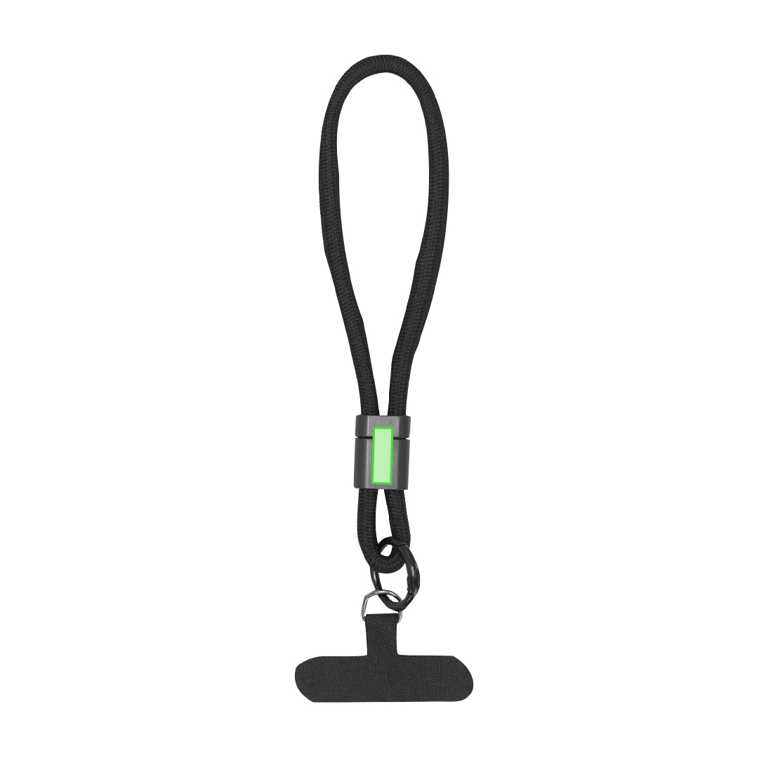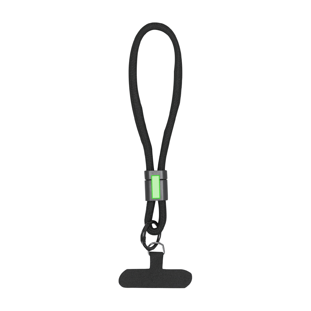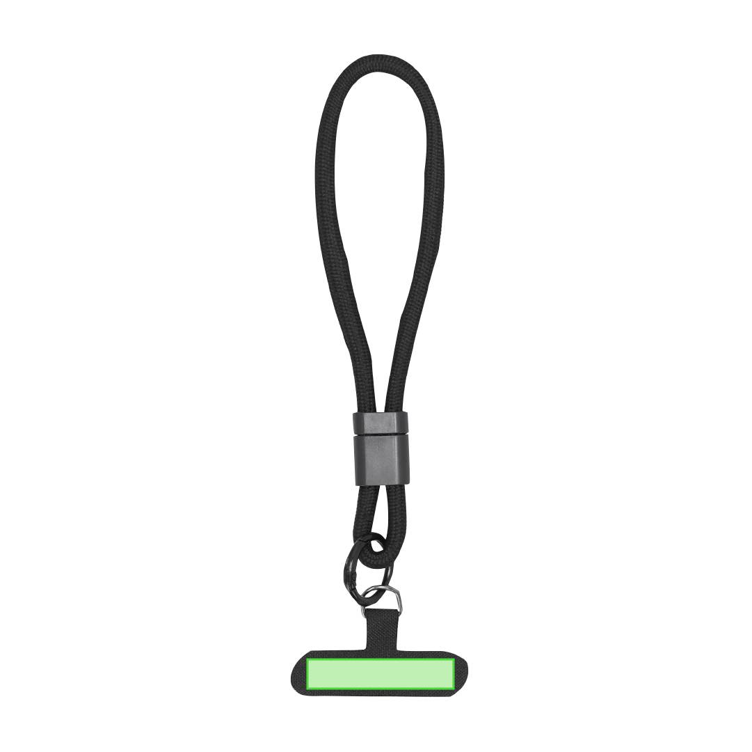 Pulsera soporte fabricada en suave poliéster. Accesorio de transporte para situar entre la funda y el smartphone, con accesorio plástico para ajuste en muñeca.