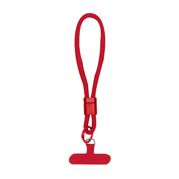 Pulsera soporte fabricada en suave poliéster. Accesorio de transporte para situar entre la funda y el smartphone, con accesorio plástico para ajuste en muñeca.