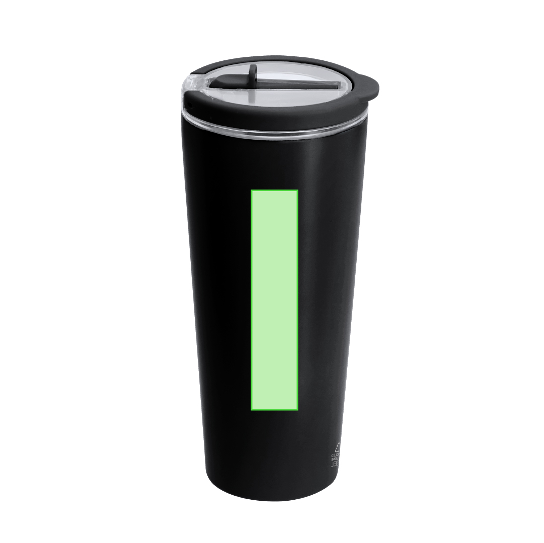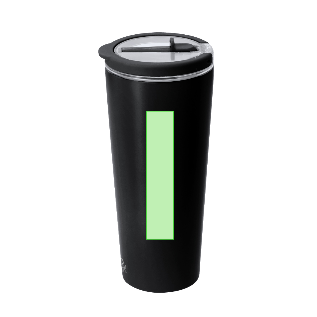 Elegante vaso térmico de acero inoxidable reciclado de doble pared y 700 ml de capacidad. De acabado mate, con tapa a rosca transparente y pajita a juego. Libre de BPA. 700 ml