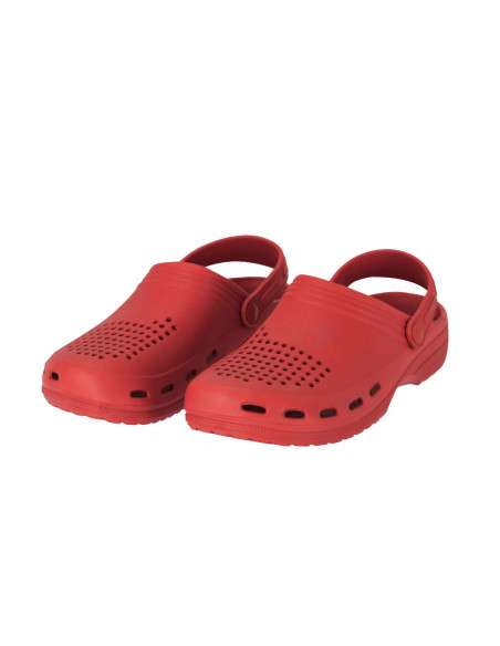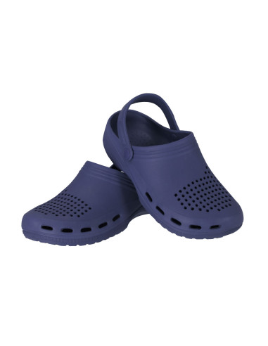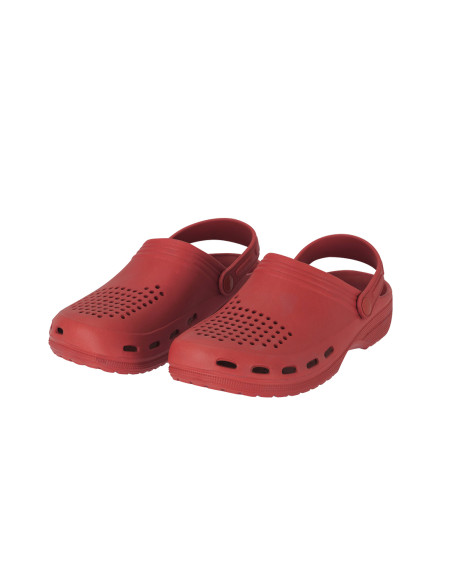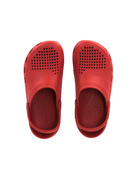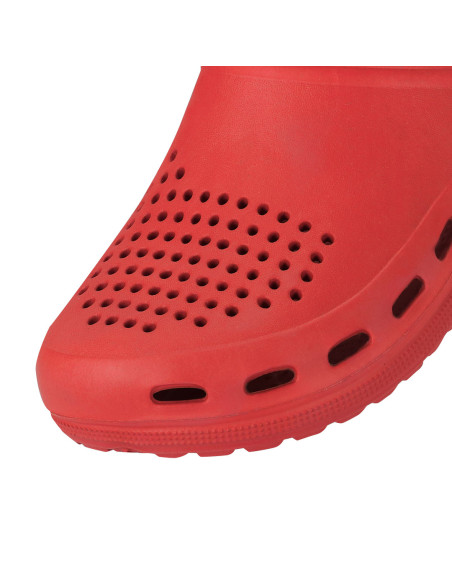 Zueco multifuncional fabricado en material EVA, ligero y confortable. Diseñado con orificios de ventilación que favorecen la transpiración del pie. El interior cuenta con una superficie texturizada que proporciona una sensación de mayor confort al caminar. Incorpora una tira trasera de sujeción, ajustable y rotatoria mediante fijación lateral, que permite llevar el calzado con mayor sujeción o en un estilo destalonado.