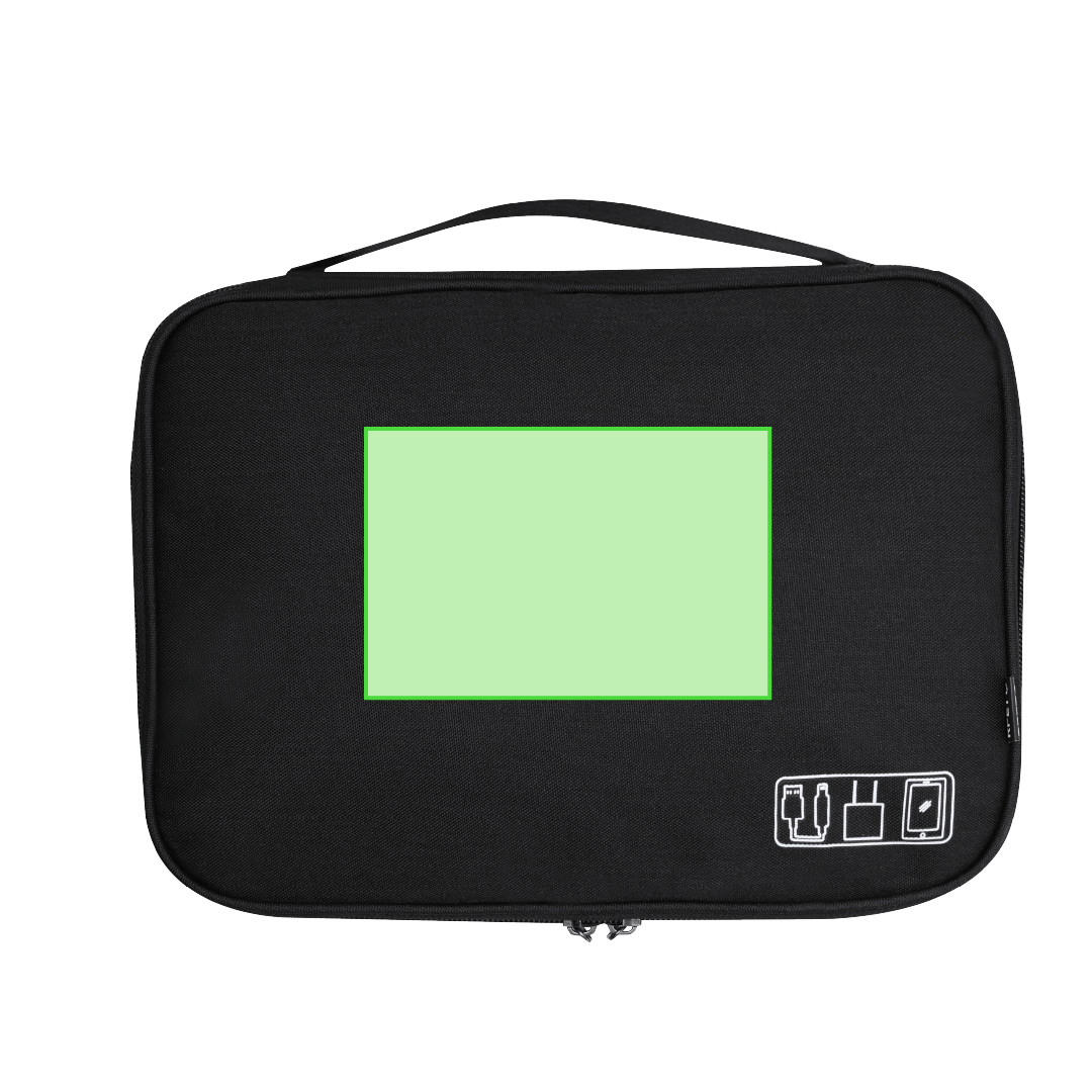 Estuche organizador de gran tamaño fabricado en RPET 600D. Incluye 3 bolsillos de apertura completa con doble tirador metálico y equipado con múltiples tipos de bolsillos interiores. Incluye asa para fácil transporte. Con distintivo RPET.