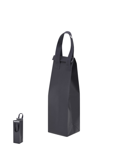 Bolsa nevera en non-woven laminado. Compartimento principal con cierre de velcro e interior isotermico de aluminio. De acabado termosellado, con fuelle lateral y asas reforzadas. Ideal para botellas de vino.